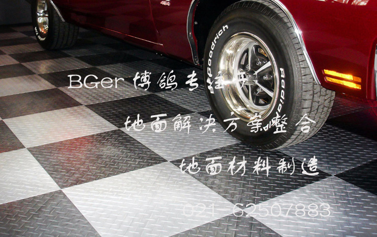 鎖扣式車庫地板做法鋪裝使用效果圖,黑+白色交替拼裝